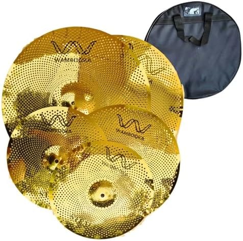 About this item Low Volume, Realistic Sound – Quiet cymbals with a natural timbre and a faithful response to acoustic cymbals. FULL 5 PIECE SET – Includes 14″ Hi-Hat, 16″ Crash, 18″ Crash, 20″ Ride and Padded Carry Case PERFECT FOR STUDY AND PRACTICE – Ideal for practicing at home, in condominiums or rehearsal rooms without disturbing. PROFESSIONAL MANUFACTURE – Precision drilled to reduce volume while maintaining sensitivity and dynamics. PORTABILITY AND PROTECTION – Packed with durable case for easy and safe transport.
